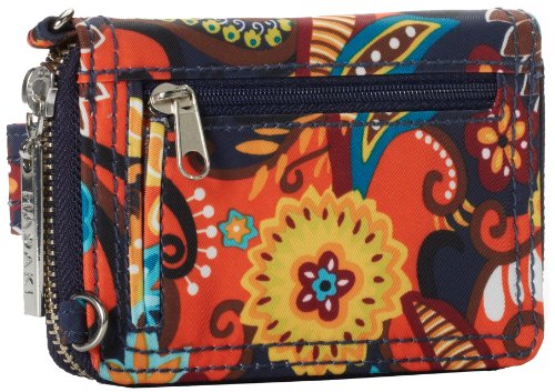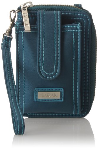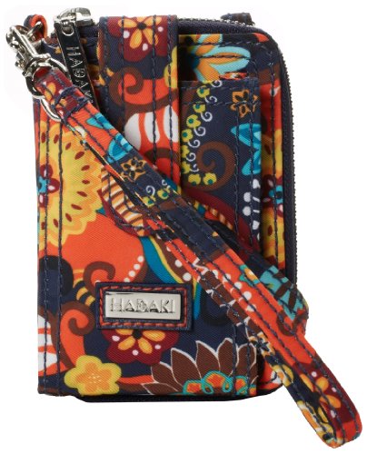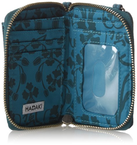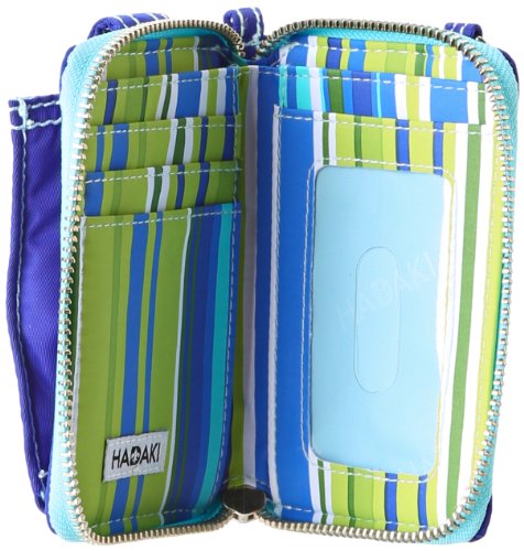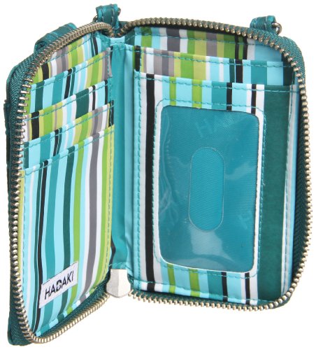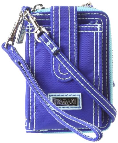 Studio : Hadaki Publisher : Hadaki Binding : Accessory Product Description This zippered case opens to an ID holder and four slip pockets for cash and credit cards. The exterior has a zippered pocket with key fob, and a pouch with snap closure for your cell phone or MP3 player. This wristlet features an adjustable, removable wrist strap and cross body long strap. It has a water repellant exterior and interior to easily wipe clean. Eco friendly. HADAKI products are AZO free. We use no Phthalates / DEHP or DBP. 0