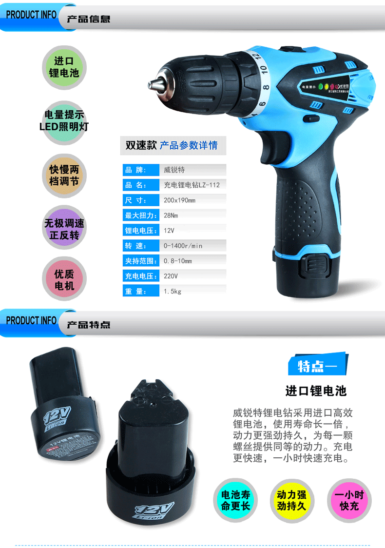 - Type: 2 SPEED,Lithium drill