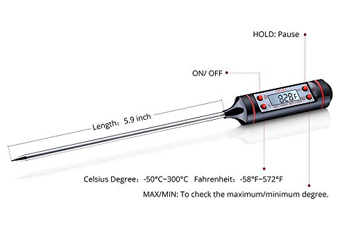 Latest Cooking Thermometers,Youdepot Digital Stainless Cooking Thermometer with Instant Read, Long Probe, LCD Screen, Anti-Corrosion, Best for Food, Meat, Grill, BBQ, Milk, and Bath Water
