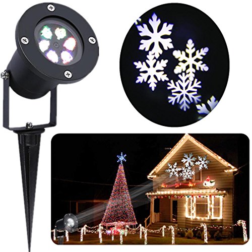 ❄【PATTERNS】This snowflake projector is automatically moving 5 to 7 white snowflakes, can be enlarged the snowflakes by placing the lamp in further place, the perfect distance is 7-15 Meters, the farthest distance ca be up to 20 meters.( In dark places)