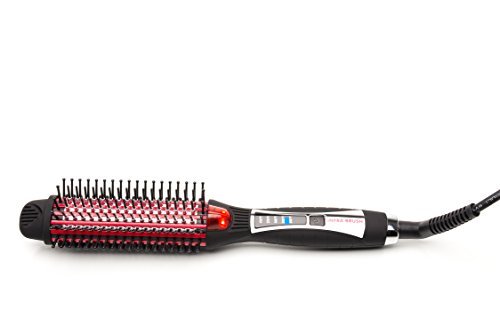 -. Feature : Tourmaline Technology seals the cuticle to control frizz and enhance shine. / Instant Heat-Up Time, complimented by 5 Temperature Settings ranging from 260°F to 410°F UNIVERSAL VOLTAGE / Ceramic plates for instant, even heat distribution. / Heat resistant holding tip for maximum styling control. / 6 Rows of short, durable, smooth brush bristles for tangle-free glide.