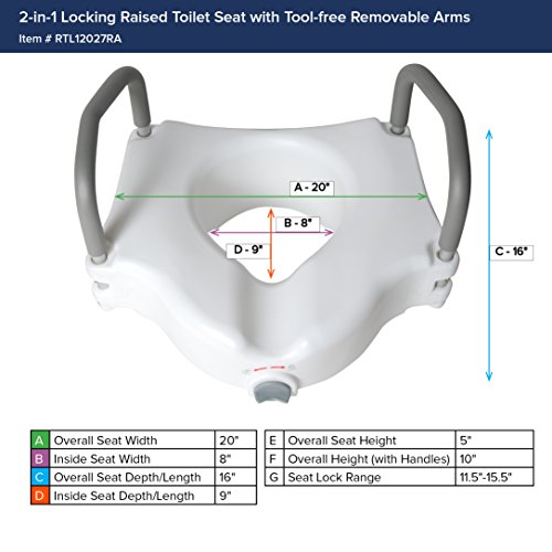 Drive Medical Elevated Raised Toilet Seat with Removable Padded Arms, Standard Seat