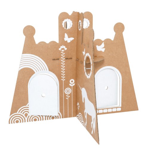 -. Feature : The Princess Castle measures 23.6" x 17.9" x 23.6" / Folds down for easy transport and storage / Made of cardboard to decorate and make their own