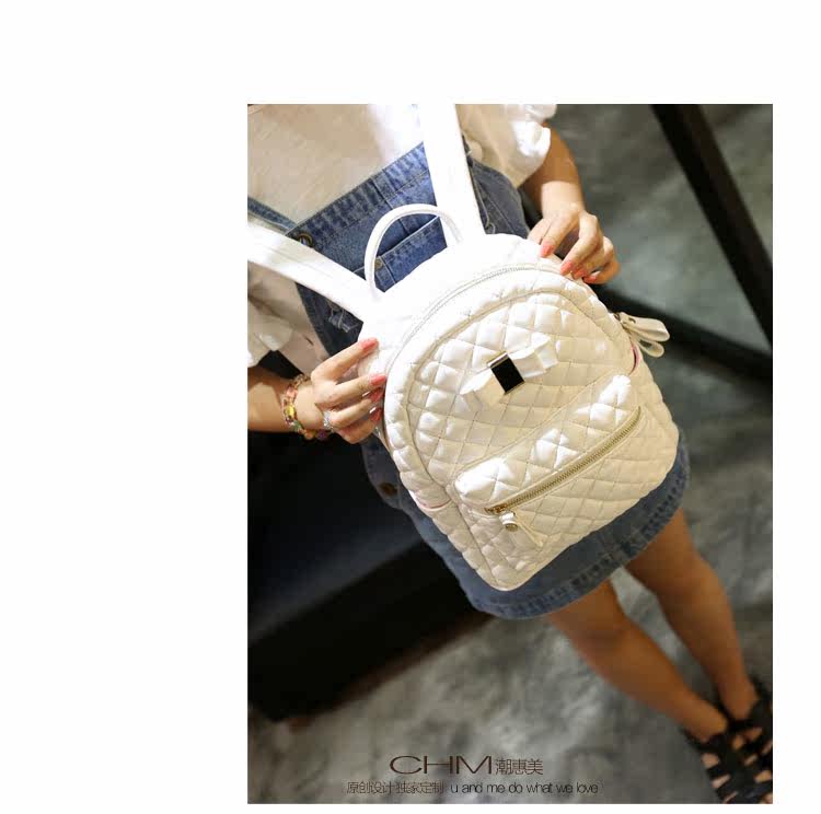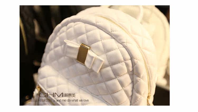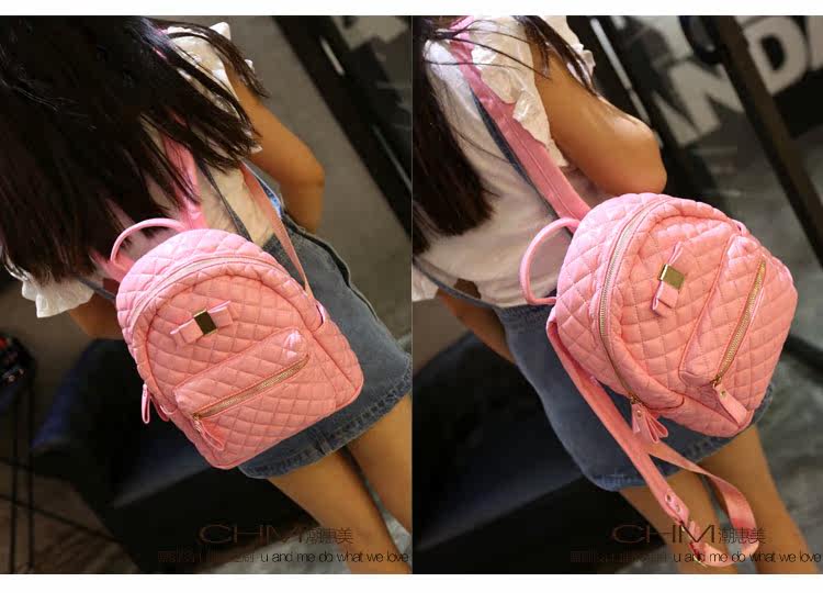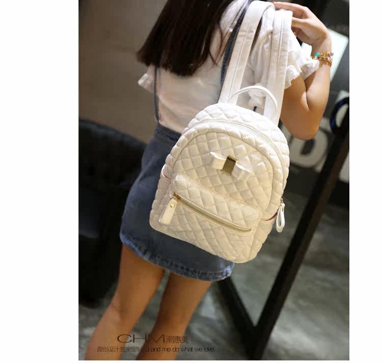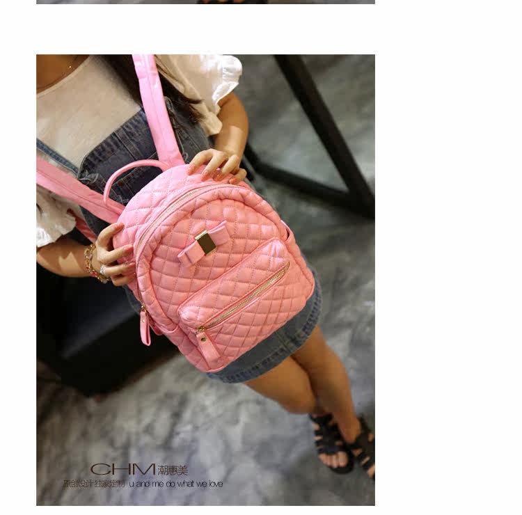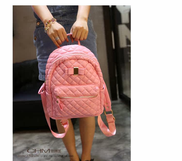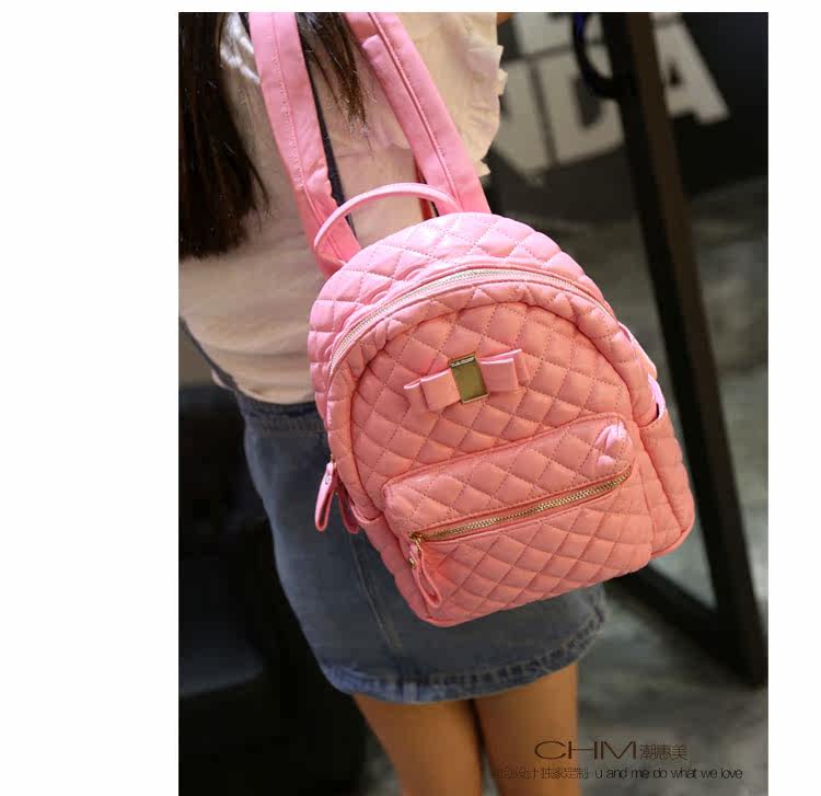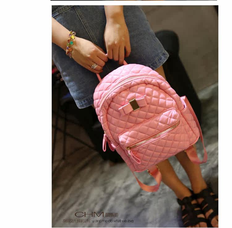2015新款超精致菱格蝴蝶结双肩包萌萌哒粉嫩双肩背包女旅游背包潮