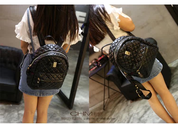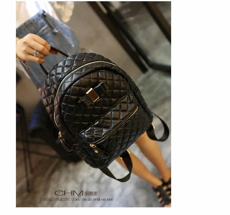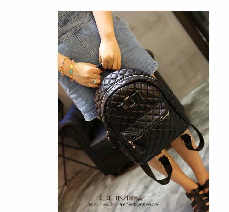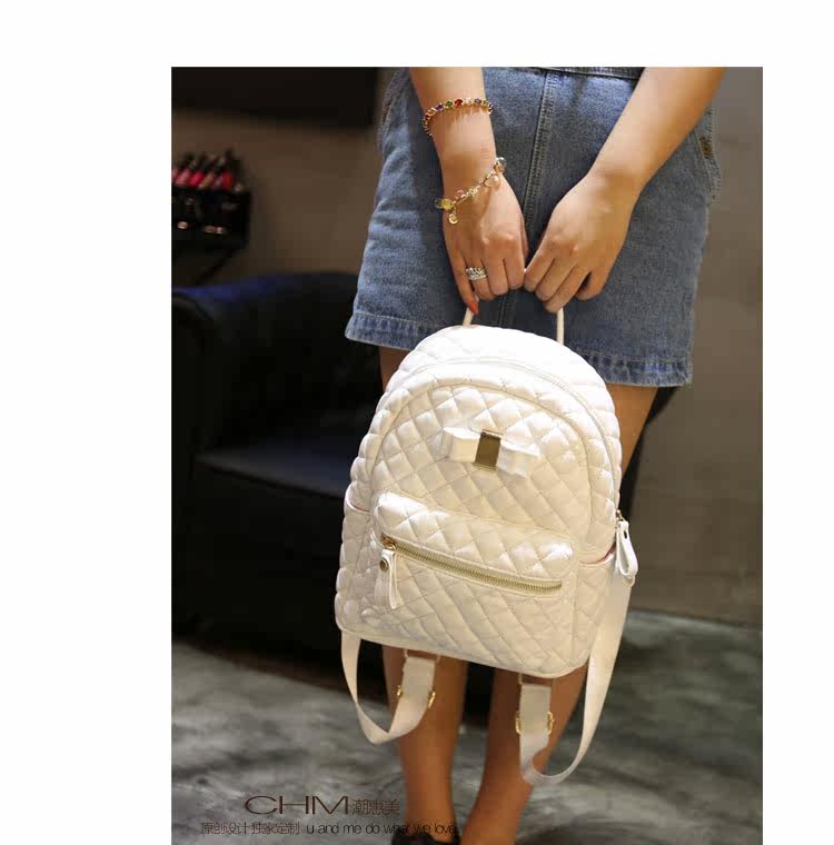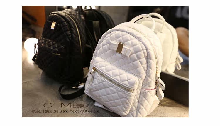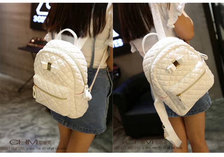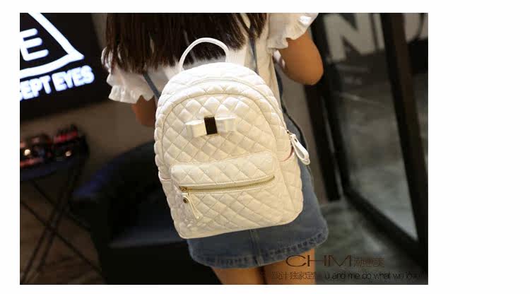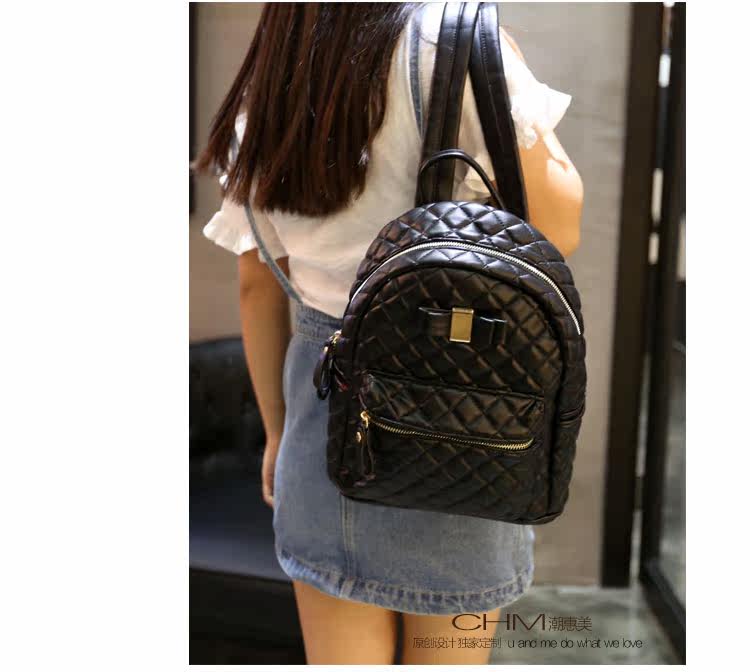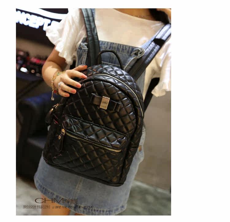 2015新款超精致菱格蝴蝶结双肩包萌萌哒粉嫩双肩背包女旅游背包潮