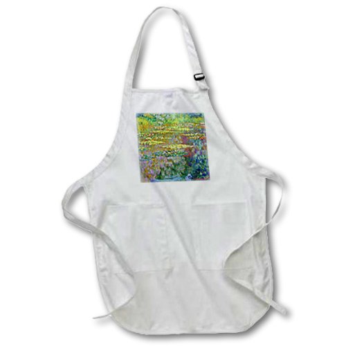 3dRose Water lilies by impressionist artist Claude Monet - waterlilies on lake famous nature impressionism - Medium Length Apron, 22 by 24-inch, With Pouch Pockets (apr_155656_2)