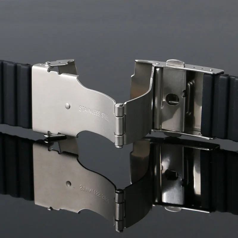 | [해외]블랙 실리콘 팔찌 배 넘 걸쇠 교체 방수 시계 스트랩 밴드 스포츠 다이빙 타이어 링크 고무 안전 Watchstrap |