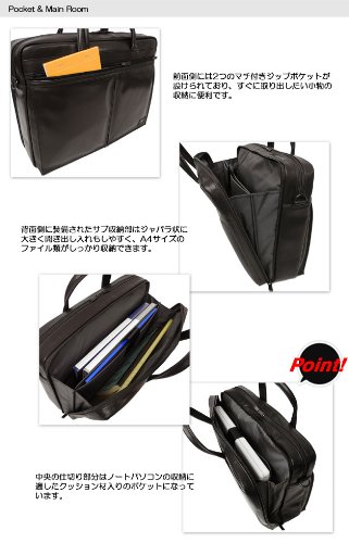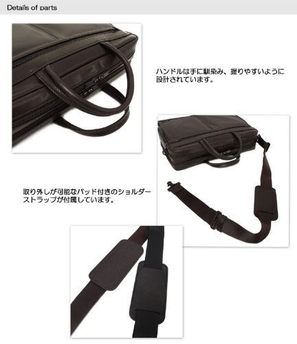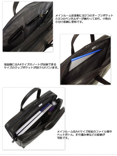 -. Feature : 【表地】牛ステア(クローム鞣し) 【裏地】ナイロンオックス(アクリスコーティング) / 【サイズ】W400×H290×D100(mm) / 【重量】約 915グラム / 【外側】ジップポケット(M)×2 / 【内側】ポケット(PC収納)×1、ジップポケット(L)×1、オープンポケット(S)×2、ペンホルダー×3 【付属】ショルダーストラップ