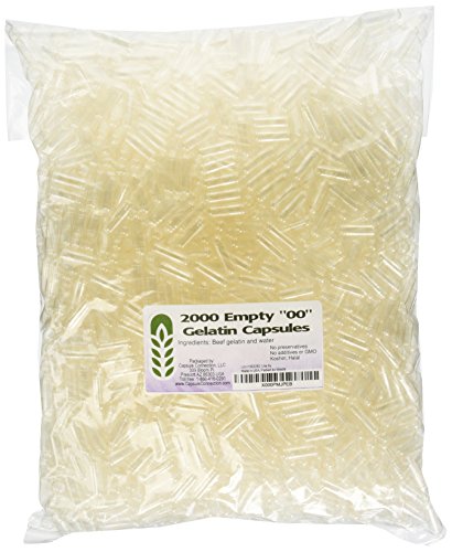 -. Binding : Health and Beauty -. Brand : Capsule Connection -. Feature : 2 bags of 1000 gelatin capsules / Empty gel capsules feature a positive mechanical lock, eliminating common problems such as dented ends and separation after filling / Work well with all types of filling machines / Capsules are fast dissolving in the stomach and easily digestible. / All capsules are Kosher and Halal certified. All capsules are GMO free. -. Label : Capsule Connection -. Manufacturer : Capsule Connection -. MPN : 1388 -. PartNumber : 1388 -. ProductGroup : Health and Beauty -. ProductTypeName : HEALTH_PERSONAL_CARE -. Publisher : Capsule Connection -. Studio : Capsule Connection -. Title : 1 Bag Bulk Wholesale 1000 "00" Empty Gelatin Capsules Gelatin capsules contain only beef gelatin and purified water.
