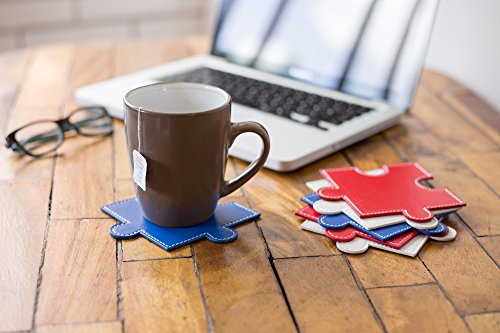 -. Title : Drink Coasters Black and USA Colors (Set of 6), Puzzle Leather Design, Suitable for Wine, Beer, Coffee, Tea, Beverages and Bar by FLAGPI