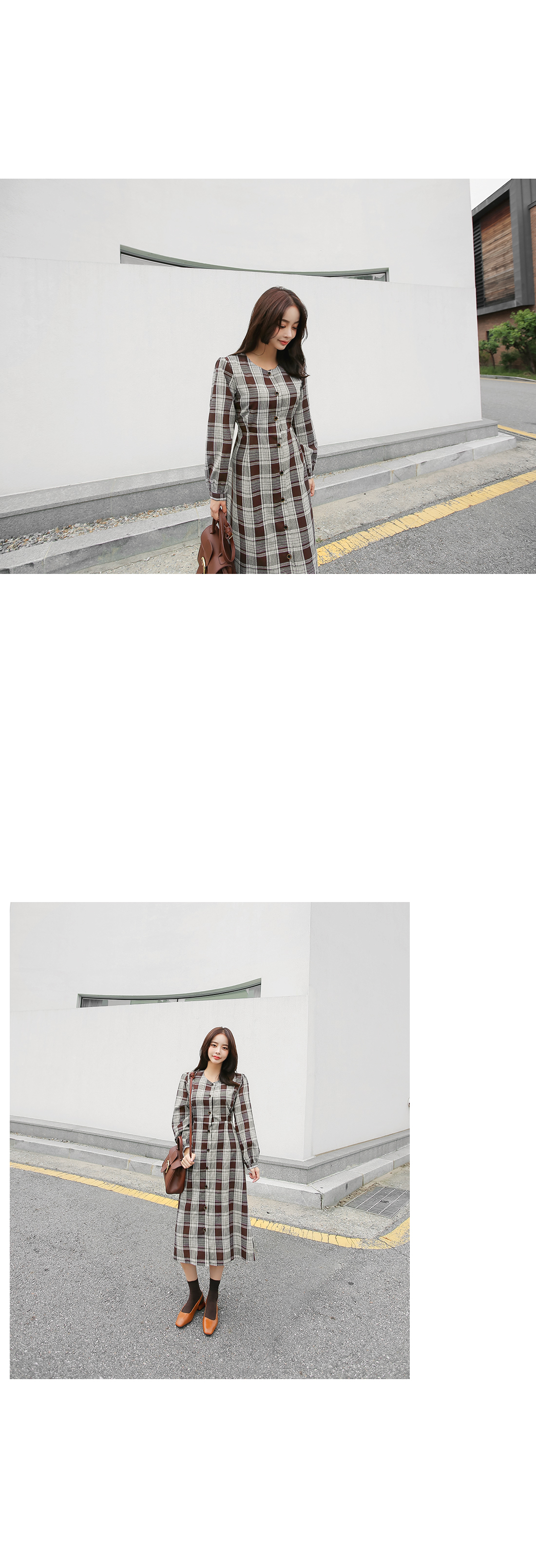 잔잔한 체크 패턴이 매력적인 원피스에요.