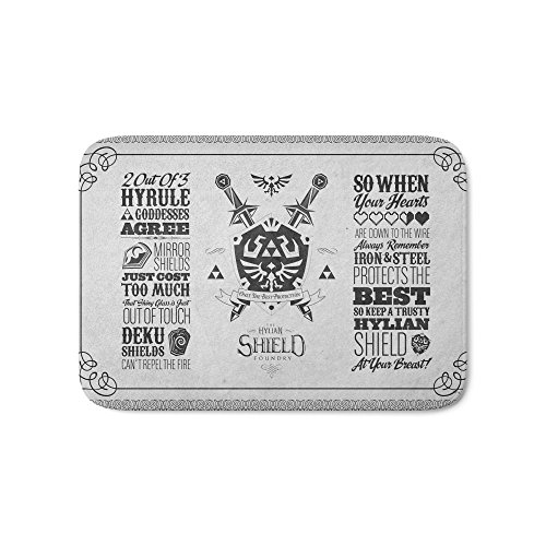 -. Brand : Society6 -. Feature : The perfect bath mats: fuzzy, foamy and finely enhanced with brilliant art. / With a soft, quick-dry microfiber surface, memory foam cushion and skid-proof backing, our shower mats are a cut above your typical rug. / Keep them clean with a gentle machine wash (no bleach!) and make sure to hang dry. / An independent artist profits from every purchase with Society6. -. Label : Society6 -. Manufacturer : Society6 -. MPN : s6-428550p55 -. PartNumber : s6-428550p55 -. ProductGroup : Home -. ProductTypeName : HOME_BED_AND_BATH -. Publisher : Society6 -. Studio : Society6 -. Title : Society6 Legend Of Zelda Hylian Shield Foundry Logo Iconic Geek Line Artly Bath Mat