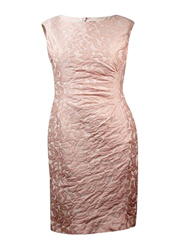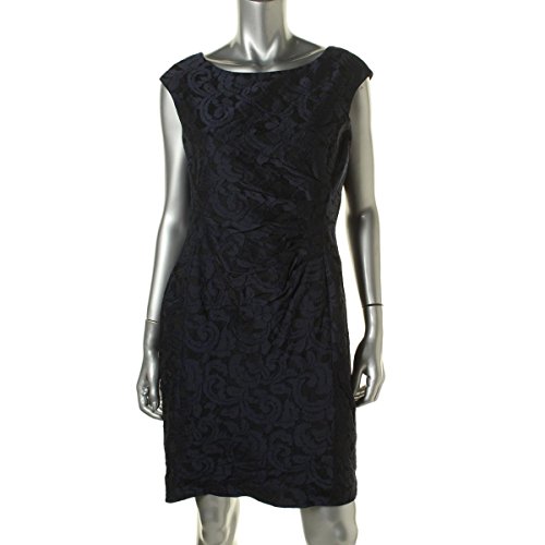 Dress features full lining, boat neck, cap sleeves, jacquard polyester blend fabric, sheath silhouette, and concealed back zipper closure.