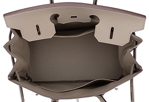 Outer Litchi Full Grained Genuine Cow Leather, Inner Synthetic Leather, Silver Hardware, Classic Pure Gray.