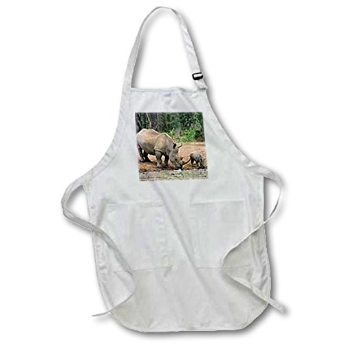 3drose Black Rhinoceros Full Length Apron with Pockets, 22 by 30-Inch