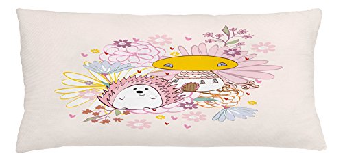 (Ambesonne)/Bedding Bath/Bedding/DIRECT FROM USA/Hedgehog Throw Pillow Cushion Cover by Ambesonne, Abstract Background with Mushroom House Hedge...