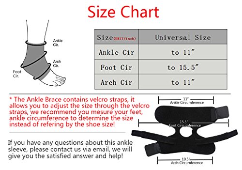 -. Feature : ★ Comfortable & Protection - CFR Ankle Braces apply therapeutic pressure across your ankle joint. Help to relief from ailments including plantar fasciitis, arthritis, sprains, swelling, achilles tendon, muscle fatigue, tendonitis and other ankle pain. CFR Ankle Brace enables you to tackle your favorite activities by helping with injury prevention. / ★ Top Quality Neoprene - Made with the top grade neoprene, the material make CFR Ankle Brace durable, flexible, comfortable and washable. / ★ Adjustable & Flexible - Universal size(up to 11" arc circumference), with double adjustable velcro straps, CFR ankle braces fit either left or righ foot for men and women, giving you decide the degree of tightness by yourself. / ★ Ergonomic Design - Open heel design allows you a wide range of motion during activies with variable support for the ankle tendons and joints. / ★ Shipment & Service - Shipped from US local warehouse, usually takes 2-6 business days/Expedited USPS P.R.Iority(1-3 business days). We 100% guarantee refund you if you don't like it within 30 days. Your satisfaction is our duty!