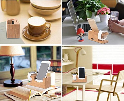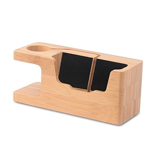 Apple Watch Stand, IPUTY 2 in 1 Bamboo Charging Stand Charger Dock Station Cradle Holder for 38mm 42mm Apple Watch iWatch and iPhone SE / 7 Plus / 7 / 6s Plus / 6s / 6 Plus / 6 and Other Smartphones