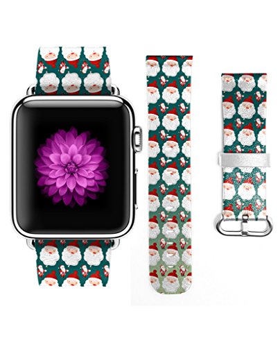 -. Title : Apple Watch Band 42mm Genuine Leather Strap Wrist Band Replacement for Apple Watch All Models 42mm - Lovely Santa Pattern