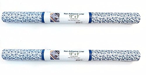 2 Wide Roll Ashley Blue Flower Lite Tack Non-Adhesive Plastic Shelf & Drawer Liner Paper Each 18" x 9'