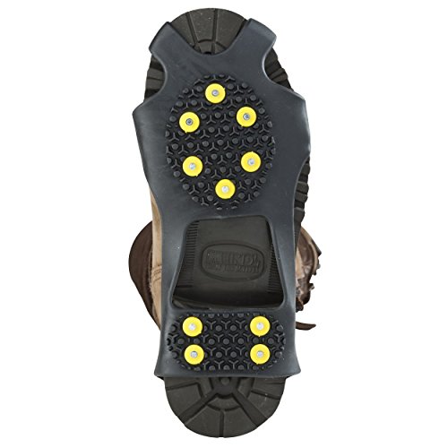 The special Ground-gripping steel studs under the ball and heel of your foot provide excellent grip on slick surfaces which makes it easier to walk on slippery ice or snow ground