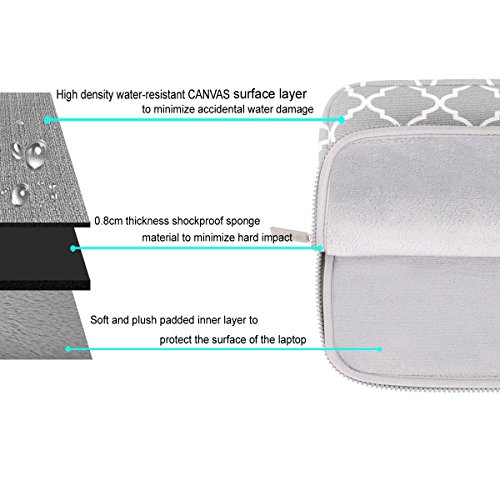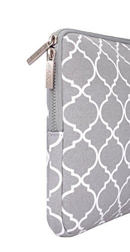 Outer canvas fabric of the case is printed with Quatrefoil / Moroccan Trellis style patterns that enable you to carry your MacBook / laptop / notebook / Ultrabook computer in a uniquely sleek style.
