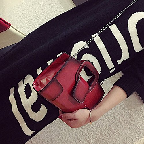 Fashion handbag made of thick patent PU and lined with wear resistant polyester fabric, simple in design and durable. Mixed light and dark colors, really adds a retro flavor of modern feeling for the bag, foils your elegant and demure temperament. The removable chain strap, lengthy enough to carry on shoulder, perfect as a handbag, clutch,tote purse, a shoulder or crossbody bag. Zipper and magnetic button safe closure, vintage fashion design, time-tested workmanship, ideal for attending parties, family event, prom, banquet, one stylish bag fits many occasions.