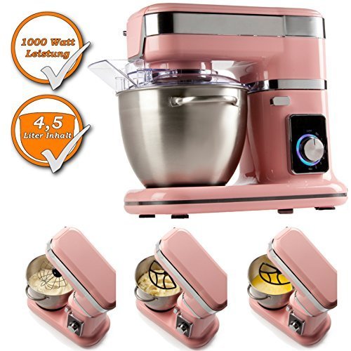 -. Title : Profi Küchenmaschine mit Planetengetriebe inkl. Schneebesen, Rührbesen, Knethaken, Farbe: rosa