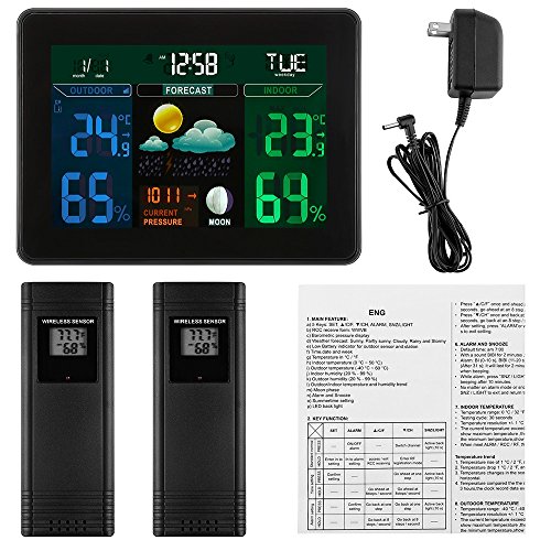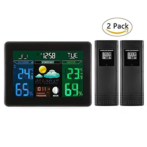 Joyhero Digital Wireless LCD Weather Station Displays Forecast with 2 Indoor/Outdoor Remote Temperature/Humidity Sensors