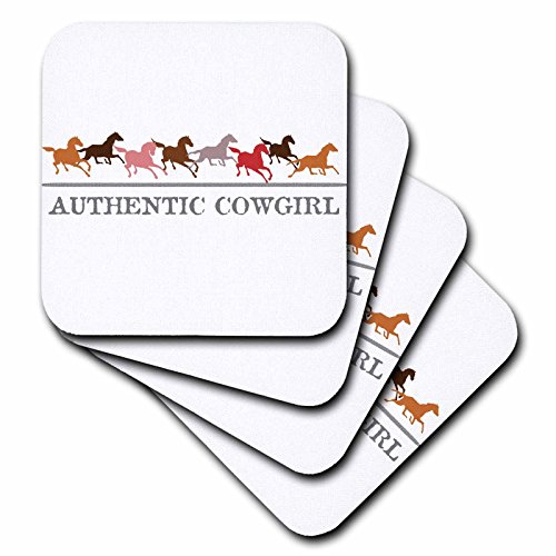 3dRose cst_151280_2 Authentic Cowgirl-Western Wild and Free Running Horses in Brown with Gray Cow Girl Grey Text-Soft Coasters, Set of 8