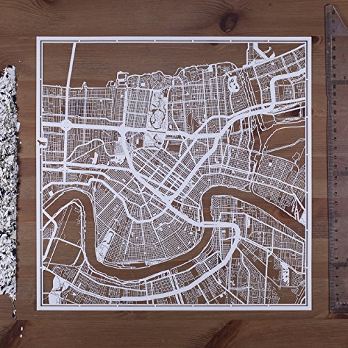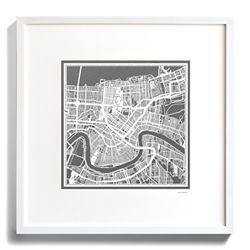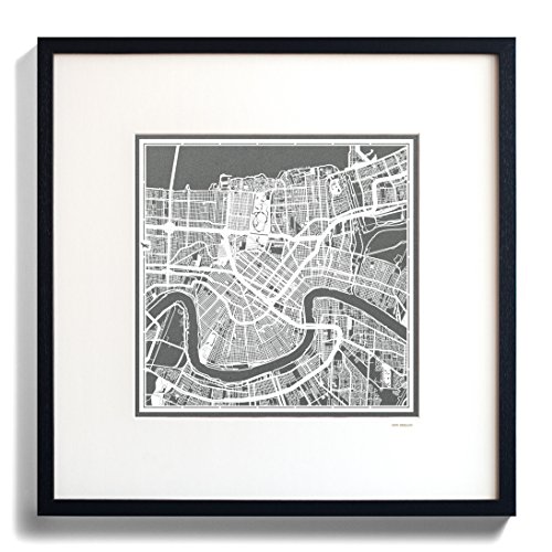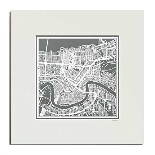 O3 Design Studio New Orleans Paper Cut Map Matted Grey 20x20 In. Paper Art