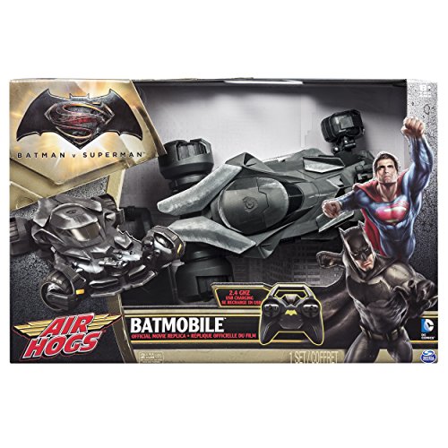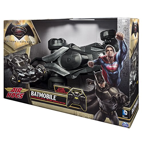 -. Feature : Drive the official movie replica Remote Control Batmobile from Batman v Superman: Dawn of Justice! Authentically designed down to the last detail. / Features 4 front mounted LEDs, mechanical turret, rear afterburner LED and incredible brushed metal detail. / The Batmobile's responsive linkage steering and 2.4GHz communication deliver precise control and long-range capabilities for a thrilling driving experience. / The Air Hogs Official Movie Replica RC Batmobile is for kids ages 8+. 2 AA batteries required for operation of the controller. Batteries not included. / 1 Batmobile, 1 Remote control, 1 USB charger, 1 Instruction sheet