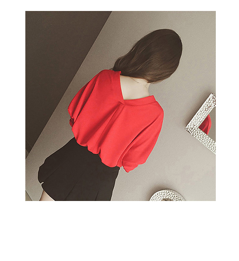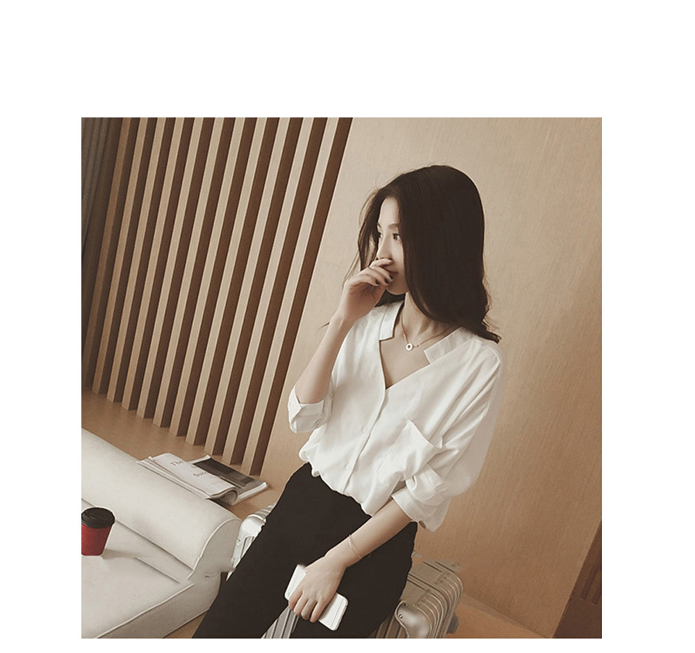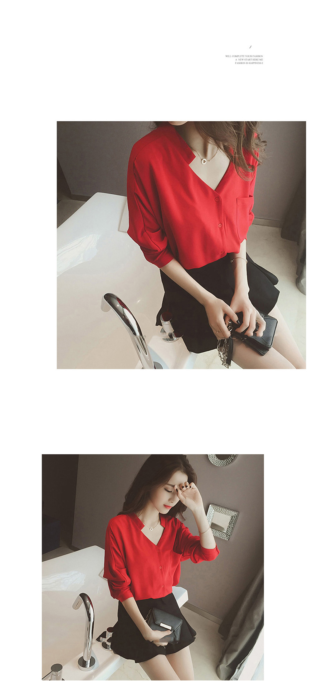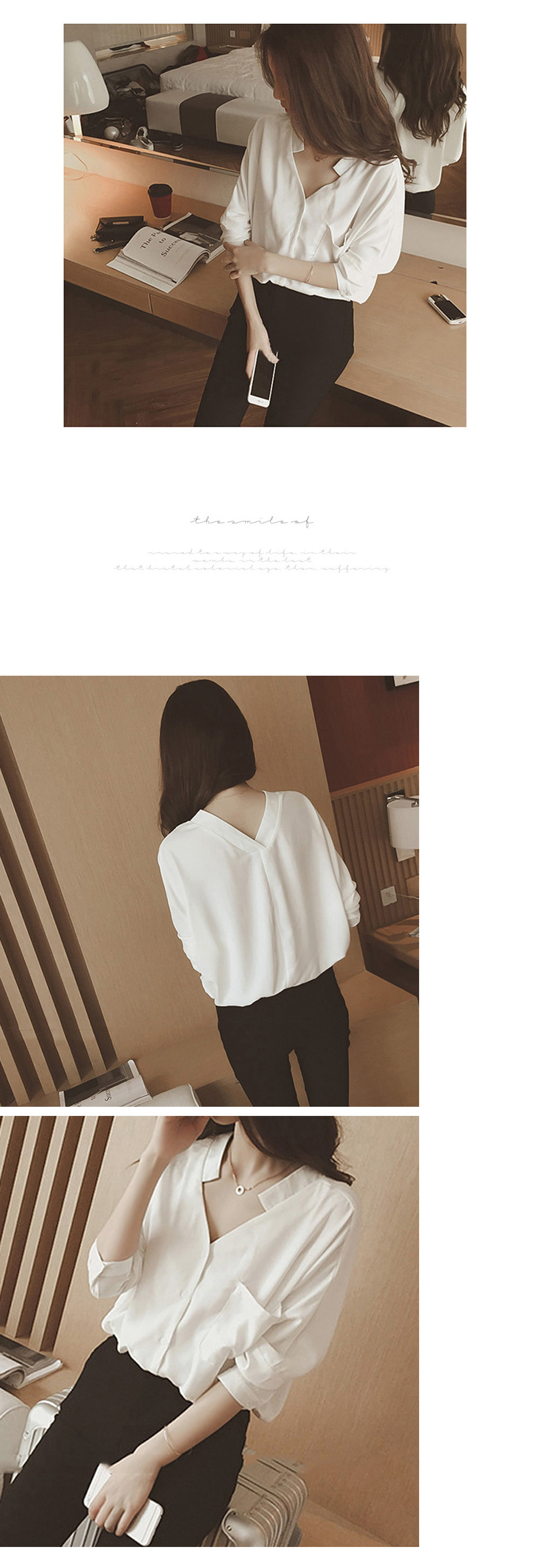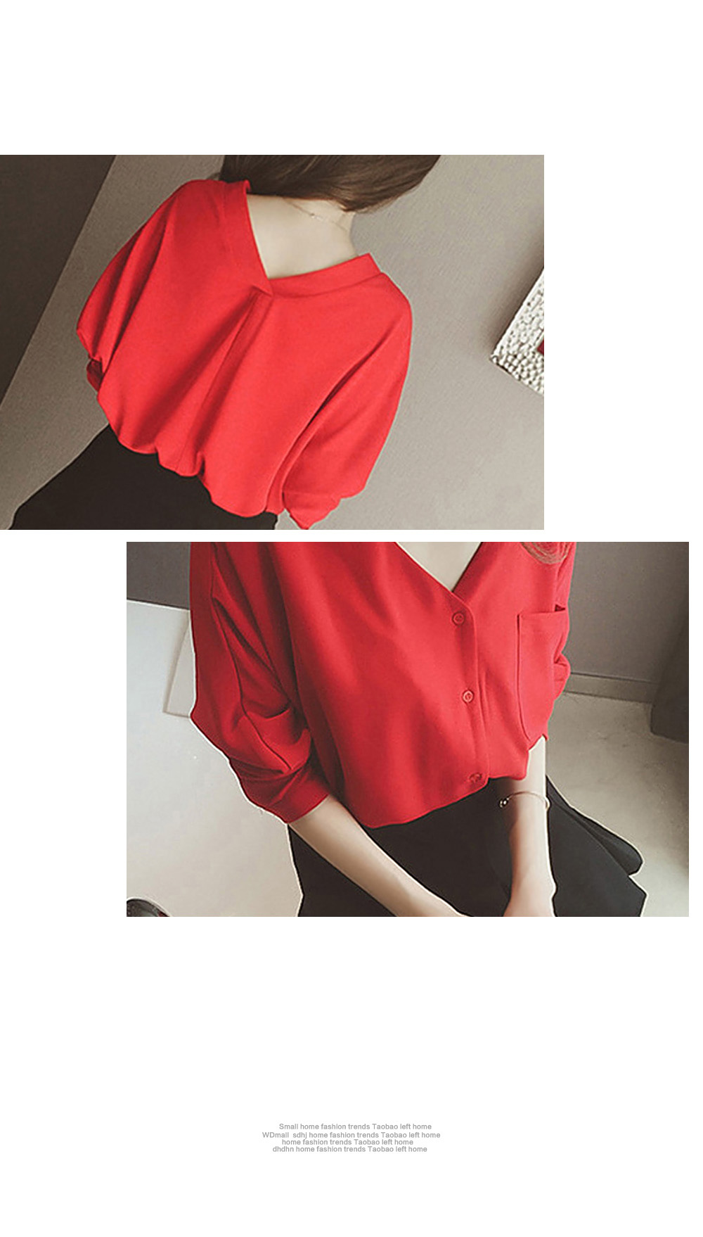 V-neck Pocket Autumn Blouse Short Sleeve Shisurugaori pit Office Waist Wedding Shirt