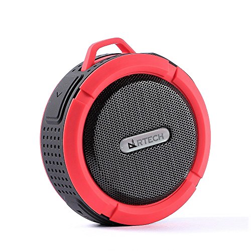 -. Title : ARTECH Bluetooth Speaker, Portable Shower Speaker, Wireless, Waterproof, Built-In Mic / Hands-Free Function, Shockproof, Suction Cup, Bluetooth 4.0, Black and Red