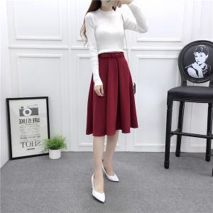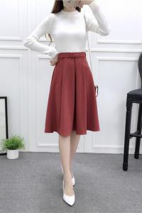 フレアスカート ハイウェスト ベルト付き 無地 フリーサイズ