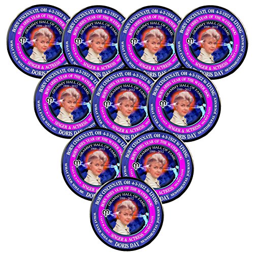 Product DescriptionPack-10 Doris Day Famous 50's Singer 3" Pin, Astrology Aries Zodiac Water Dog0