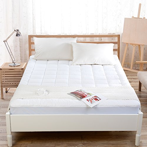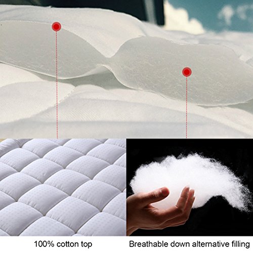 -. Feature : MATERIAL: 300 TC 100% cotton top, 83 GSM pongee reverse. 130 GSM elastic fabric pocket can make the mattress pad installed easier. / FILLING: 62 oz ultra soft combed cotton filling makes you feel like sleeping over a cloud, gives you a comfy night's sleeping. The quilted mattress pad is designed with square jacquard, which can prevent the filling running around. / HYPOALLERGENIC & BREATHABLE: The skin-friendly cotton makes the cover 100% hypoallergenic. The cotton top's breathability can decrease mold and mildew, which makes you sleep better at night. / EASY CARE: Machine wash on cold and tumble dry on low. Easy to care. Prompt: do not bleach. / GUARANTEE: We trust our products' quality and want your fully satisfaction, If it appears any quality problem or anywhere you are not satisfied, we promise to refund.