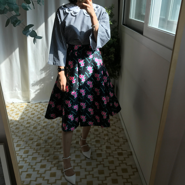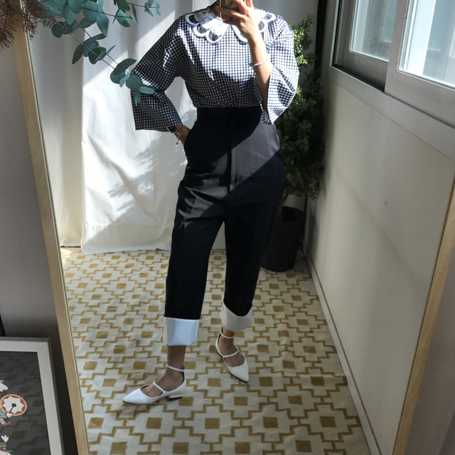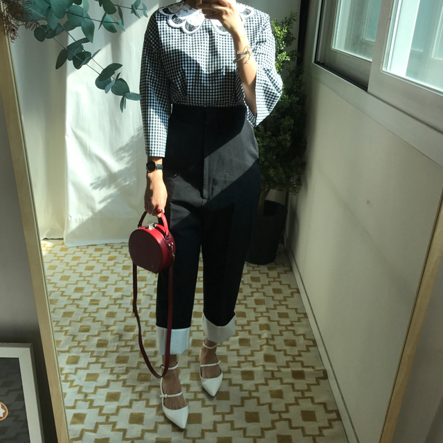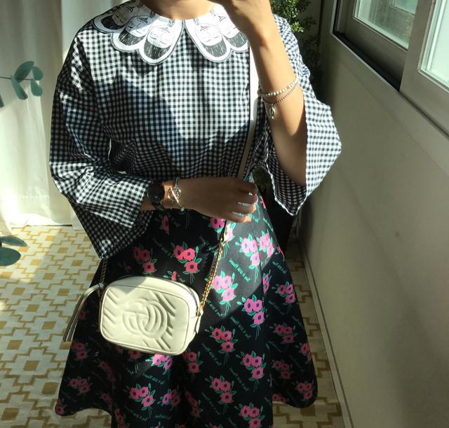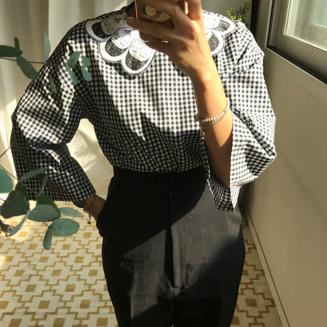 Face Color Check Blouse Autumn Unique Design Colors Unique Style Retro Mood Look