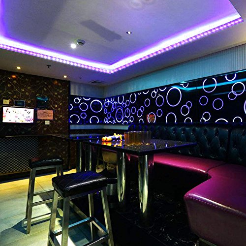 -. Feature : Multi-Functional Blacklight - Great choice for room disinfection, DJ, photograph, night fishing, 3D print, test paper money, induce and kill insect, promote plant growth, fluoresce dried urine,food stains etc. / Flexible DIY Cuttable Strip Light - This LED Product with 300LEDs can be cut along the cutting line into different length you want it be. You can put the LED Strip on any place that is dry and flat. / Slim Compact Safe Light Strip - Certificated with UL, CE, ROSH, very safe to use. Super bright 5050 SMD UV blacklights LED light strip; Length: 5 meters/16.4ft; LED quantity: 300leds in total; powered by DC 12V 2A power supply(not included). / Easy Installation UV Light - Self-adhesive back with adhesive tape for secure and easy application. Suitable apply for store, jewelry shops, showcase, cabinet, backdrop, advertising signs and other occasions. / Perfect Decorative Black Light - Create stunning atmospheres at gigs or parties, works great with UV body paints & fluorescents.Ideal for Halloween and Christmas parties, plays, events and gallery.