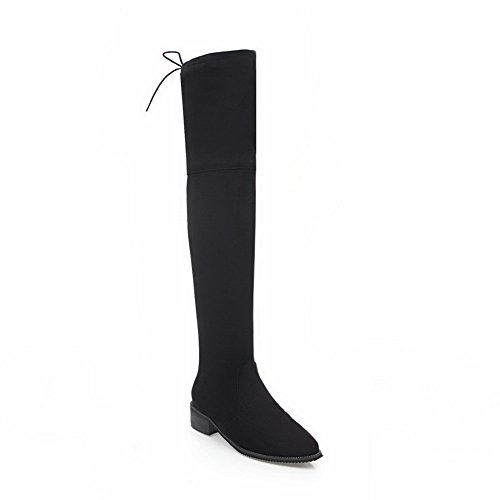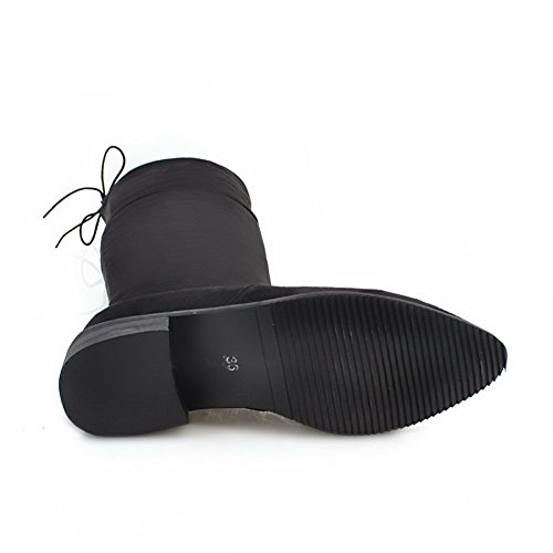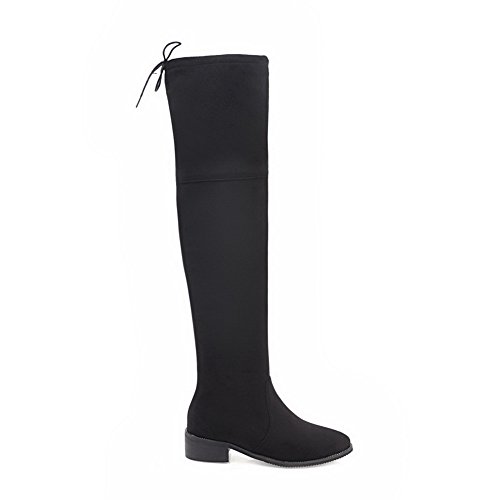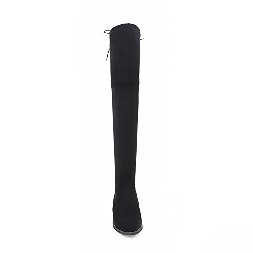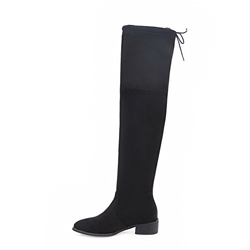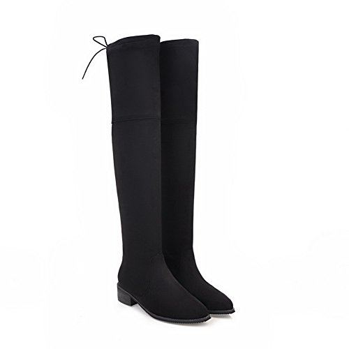 (BalaMasa)/Women's/Boots/DIRECT FROM USA/BalaMasa Womens Penny-Loafer Pull-On Low-Heels Pointed-Toe Above-The-Knee Suede Boots ABL09839