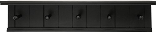 This coat rack shelf features 5 sturdy pegs and 1 integrated display shelf making it perfect for entryway organization, bathroom, kitchen, or bedrooms. Hang your keys, leashes, accessories, hats, scarves, coats, towels, etc. Display your favorite decorative items on the shelf. This easy to hang shelf comes assembled with hanging hardware.Feature