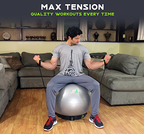 【PREMIUM QUALITY】- Our fitness yoga exercise ball base was created with quality in mind. Our high grade base will insure your ball does not roll around during casual use or exercising. The added resistance bands will keep up with any exercise you throw at it guaranteeing a solid workout every time.