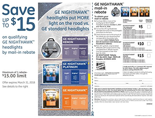GE NightHawk Automotive Replacement Bulbs provide optimal illumination for safer driving after dark. These ultra-bright, street-legal bulbs ease the challenge of night driving by making it easier to see farther down the road. According to the National Safety Council, automotive related death rates are three times greater at night than during the day. With the NightHawk bulbs lighting the way, you'll drive safer and with greater confidence. And since these bulbs are just as easy to install as any other replacement bulb, you can reap the benefits of NightHawk's intelligent bulb technology within a few short minutes.