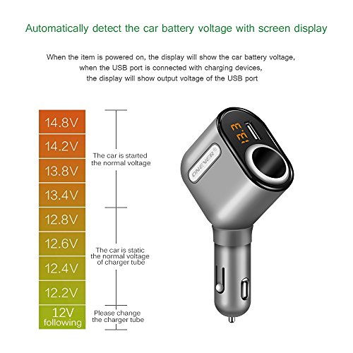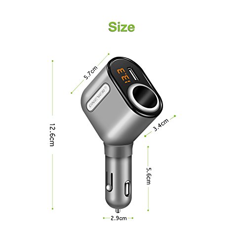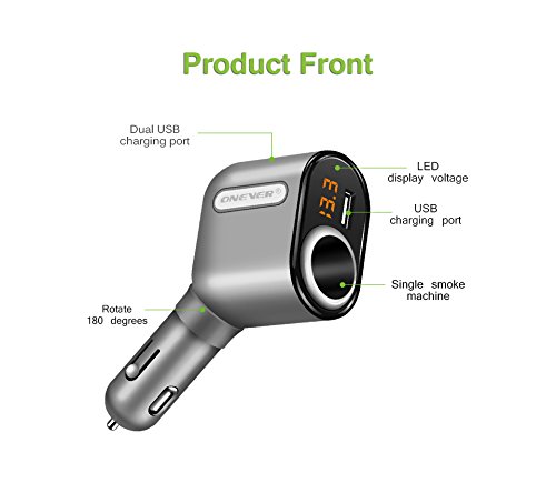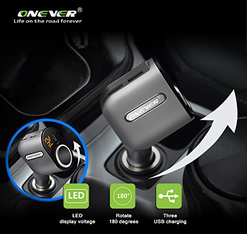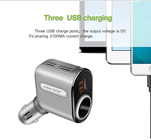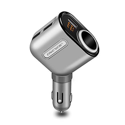 ONEVER 2 In 1 Cigarette Lighter Power Adapter with 3 USB Car Charger Ports Adapter with Voltage Display and Smart Charging IC for iPhone7 7s iPad mini Samsung Galaxy and ect.