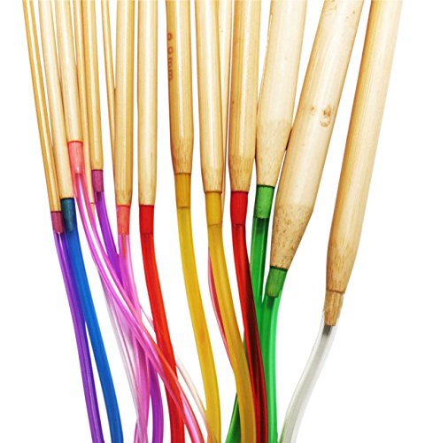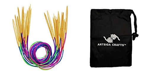 - KNITTERS MARK BUNDLE: Includes 18 Polished Bamboo Circular Knitting Needles 80 cm (32 inch) Tip-to-Tip-Length using Color Plastic Cable, Needles Sizes Range from 2mm-10mm with 1 Artsiga Crafts Small Craft Bag 8SN-B79867; Needle Set is ideal for the beginner or intermediate knitter