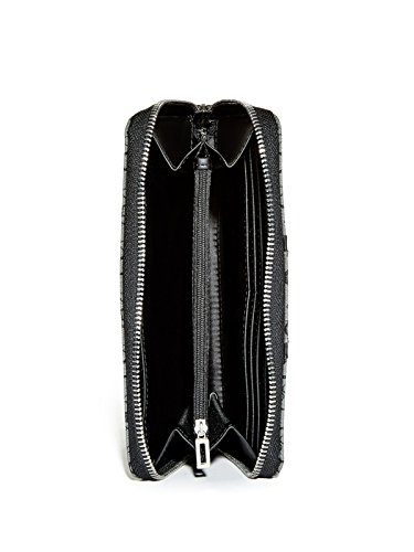 Feature : guess_factory_women_handbags_wallets_wristlets / guess factory women handbags wallets wristlets one / coal textured print faux leather exterior silver / tone hardware solid trim stripe design front / emblem closure divided interior card slots bill