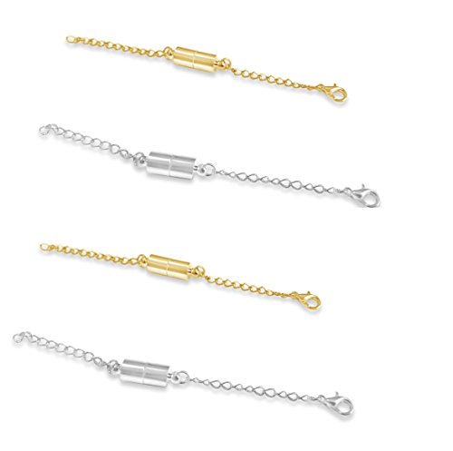 SPARIK ENJOY 14pcs Gold & Silver Necklace Extenders 4" Magnetic Jewelry Extenders and 10pcs Tone Magnetic Lobster Clasp for bracelets, & necklaces
