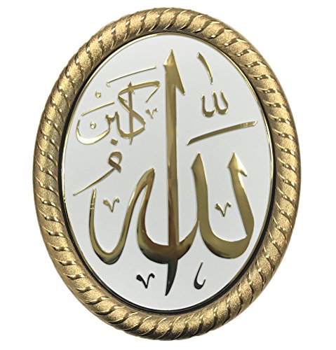 Islamic Gift Acrylic Decor Oval Plaque 7.5 x 9.5in Gold White Allah 0331