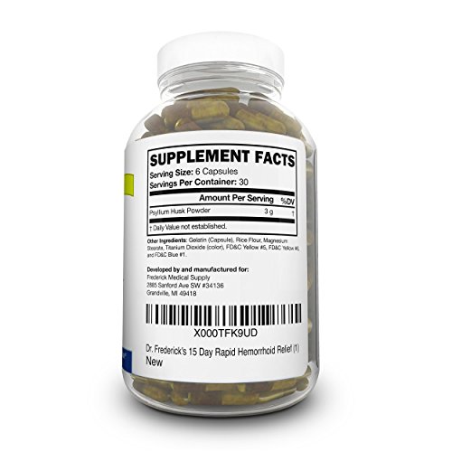 -. Binding : Health and Beauty -. Brand : Dr. Frederick's Original -. Label : Frederick Medical Supply -. Manufacturer : Frederick Medical Supply -. ProductGroup : Health and Beauty -. ProductTypeName : HEALTH_PERSONAL_CARE -. Publisher : Frederick Medical Supply -. Studio : Frederick Medical Supply -. Title : Dr. Frederick's 15 Day Rapid Hemorrhoid Relief - 100% Blond Psyllium Husk Powder - High Dose Fiber Supplement - Reduce bleeding, Itching, Pain, & Strain.