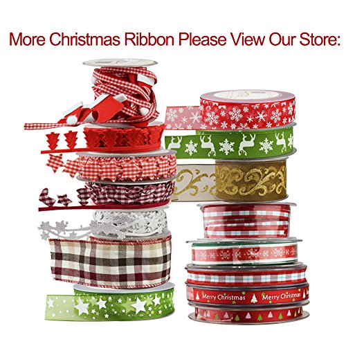Fowod Christmas Winter Ribbon,mixed 0.39 inch and 0.59 inch, 16 feet each roll (Red)